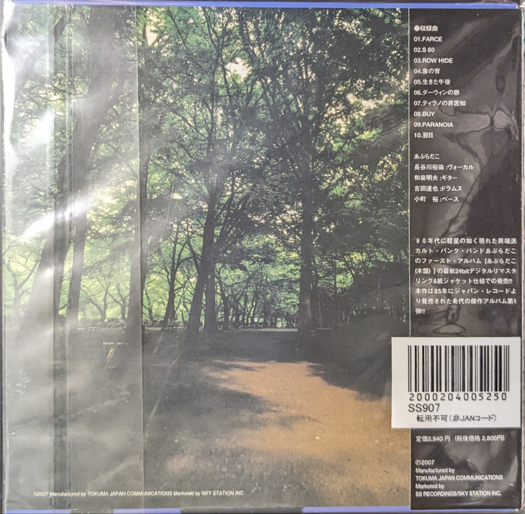 あぶらだこ「1st Album (木盤)」 状態:未開封新品 / 帯少々日焼け 定価:3,080円 85年にジャパンレコードより発売されたアルバム第一弾。 最新24bitデジタルマスタリング&紙ジャケット仕様